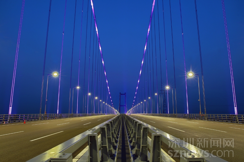 入夜后亮燈的虎門(mén)二橋(施工單位供圖)