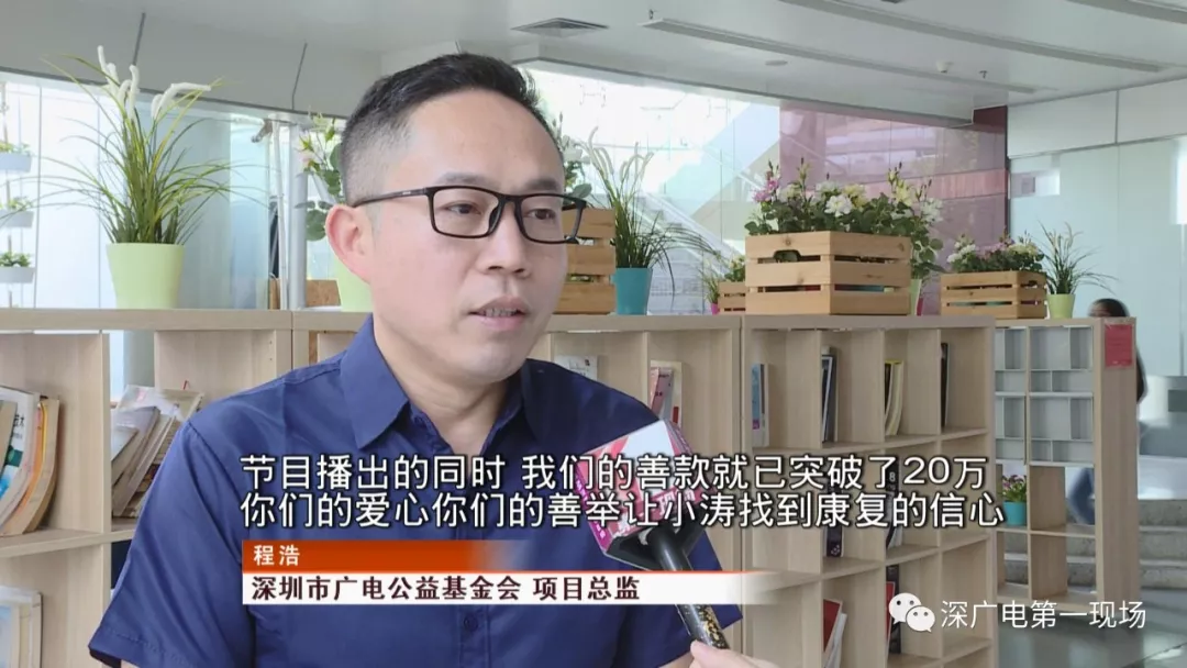 廣電公益基金會(huì)項(xiàng)目總監(jiān)程浩告訴記者,這也是《第一現(xiàn)場(chǎng)》近期救助個(gè)案中速度最快的一次,特別感謝深圳這座愛(ài)心的城市,可愛(ài)的市民的的善舉,讓小濤找到了康復(fù)的信心。