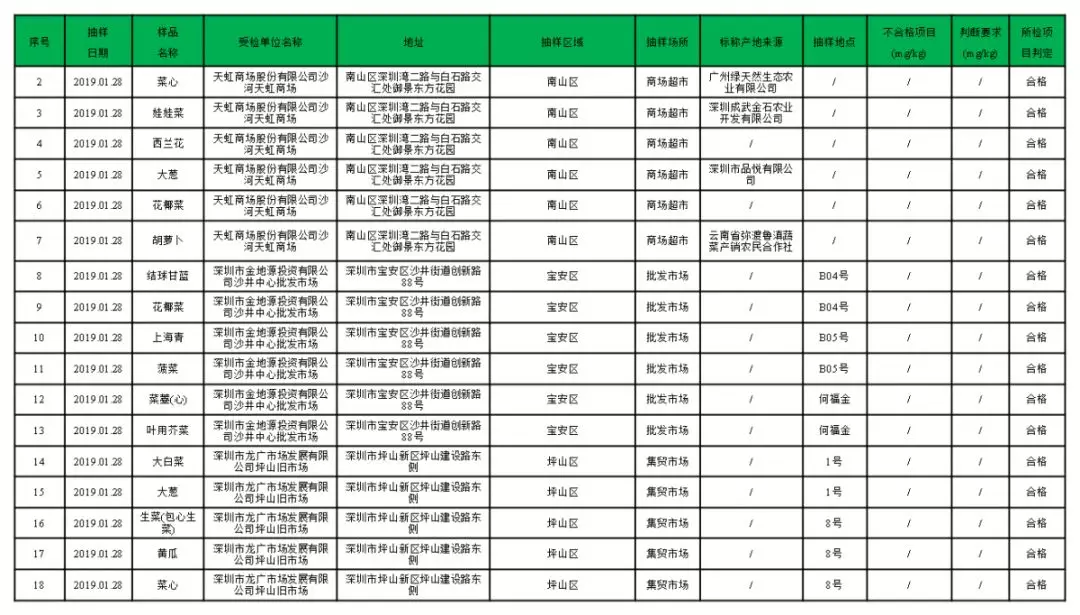 蔬菜有1份抽樣樣品不合格