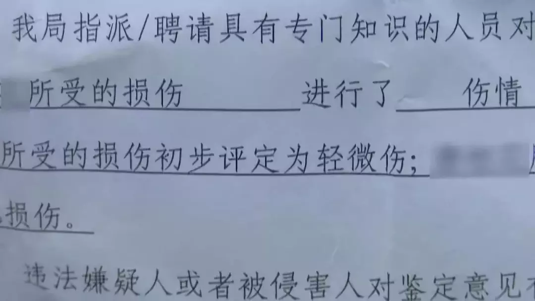 法醫(yī)初步鑒定為輕微傷