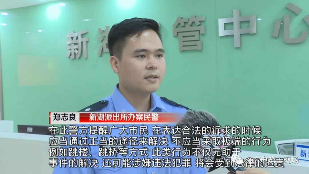 3月27日傍晚18時許,光明公安局分局新湖派出所街道轄區(qū)某公司負責人的報警在公司宿舍樓頂有員工揚言跳樓,希望民警幫助處置。