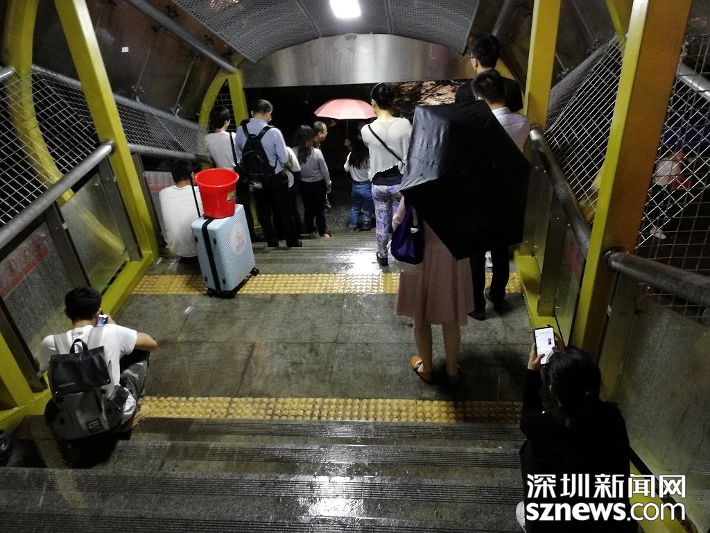 深圳暴雨特效開啟,市民紛紛進(jìn)入躲雨模式。(記者 邱曉潔 攝于丹竹頭地鐵站)