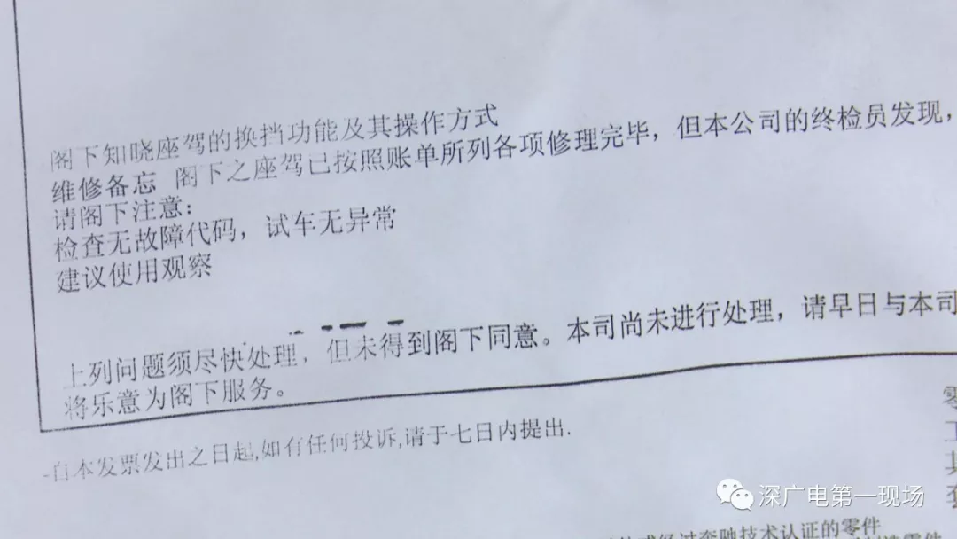 楊先生說,自此之后,無論車上是否有人,車輛天窗經(jīng)常都會(huì)出現(xiàn)自動(dòng)開啟的現(xiàn)象,即便是經(jīng)過檢修,可問題還是沒有得到徹底的解決。不僅如此,楊先生說,在這之后,車輛的還出現(xiàn)了各式各樣的故障。