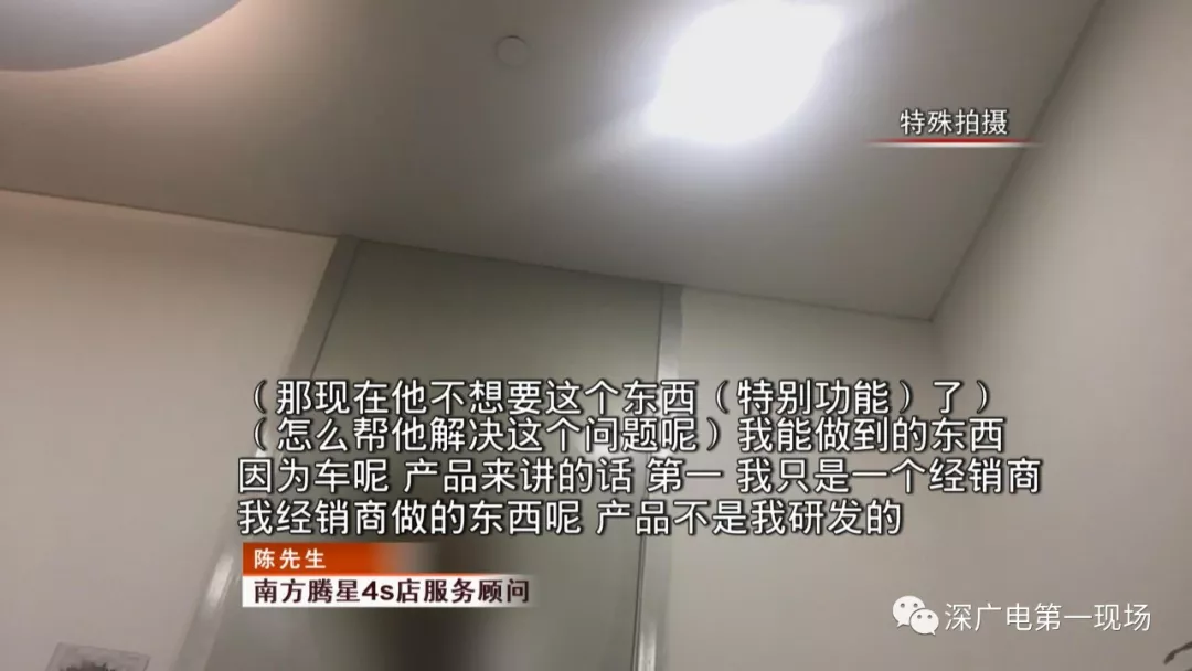 今天下午,記者跟著楊先生再次來到了南方騰星4s店,售后經(jīng)理陳先生表示,車輛自動(dòng)開啟天窗的換氣功能,是這輛車的一個(gè)特別功能,對于給客戶帶來的不便,這位工作人員卻始終無法解釋清楚。