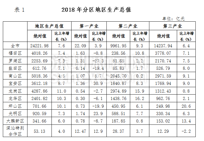 深圳新聞網(wǎng)2019年4月19日訊(記者 劉夢(mèng)婷 通訊員 胡雪濤)4月19日,記者從深圳市統(tǒng)計(jì)局獲悉,深圳市2018國(guó)民經(jīng)濟(jì)與社會(huì)發(fā)展統(tǒng)計(jì)公報(bào)出爐:全市實(shí)現(xiàn)地區(qū)生產(chǎn)總值24221.98億元,比上年增長(zhǎng)7.6%,常住人口達(dá)1302.66萬人。人均可支配收入57543.60元,居民人均消費(fèi)支出40535.02元。總體來看,2018年深圳經(jīng)濟(jì)運(yùn)行穩(wěn)健,主要經(jīng)濟(jì)指標(biāo)表現(xiàn)良好,高質(zhì)量發(fā)展扎實(shí)推進(jìn)。