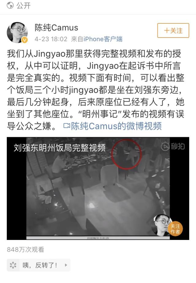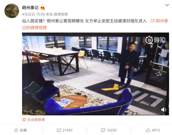 就在人們以為事件就此平息的時候,又爆出一系列和該案有關(guān)的料。首先是本案當(dāng)事人LIUJINGYAO宣布起訴京東集團及劉強東。4月22日、23日微博上爆出監(jiān)控視頻以及劉強東美國律師和LIUJINGYAO之間電話談話的錄音。