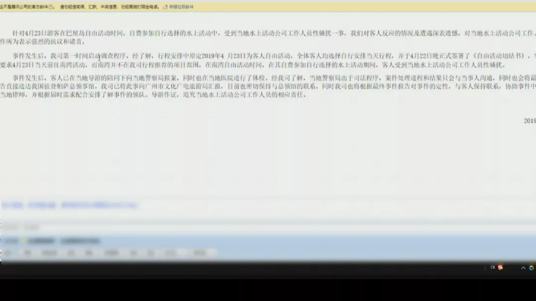 印尼方在26號(hào)召開了新聞發(fā)布會(huì),確認(rèn)了楊先生的女兒被侵犯的事實(shí)。據(jù)了解,嫌疑人今年29歲,是爪哇島人,目前在等待下一步的審判結(jié)果。隨后記者聯(lián)系到了南湖國旅的工作人員,對(duì)方表示不方便接受采訪,隨后發(fā)來了一個(gè)回應(yīng)郵件。