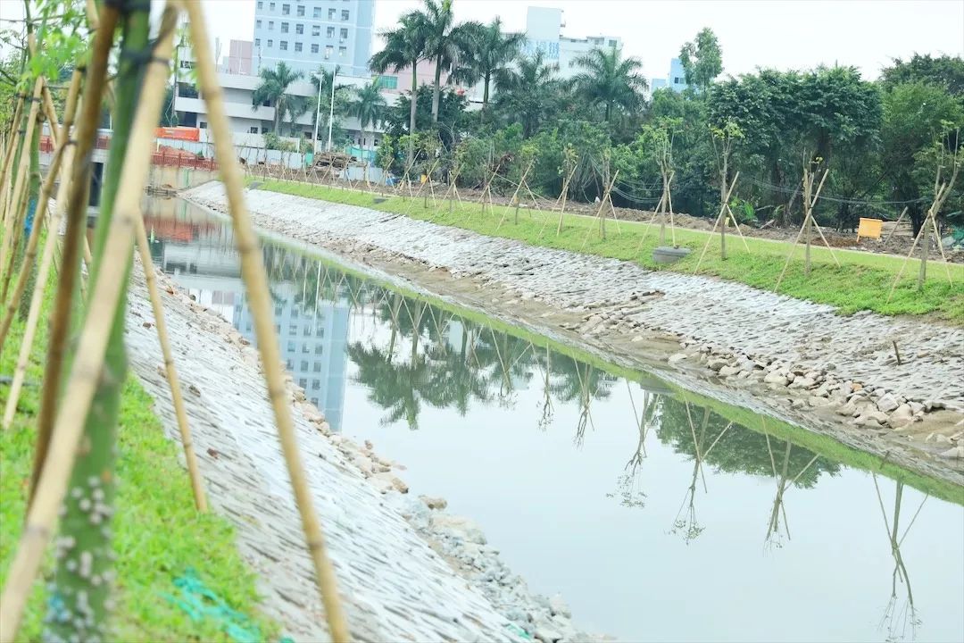 張堯:“石圍涌的治理長度大約808米,自2018年7月開工治理以來,到目前基本完成了所有的施工內(nèi)容,主要包括河道主體施工、沿線截污與景觀綠化,將之前的臭水溝改造成了綠草如茵、游人不斷的景觀長廊。”