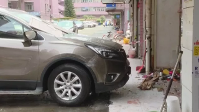 今天早上10點(diǎn)03分,深圳寶安區(qū)西鄉(xiāng)街道福中福社區(qū)內(nèi)的停車(chē)場(chǎng),一輛別克SUV突然失控撞向街邊一家賣(mài)女性服裝的店鋪。