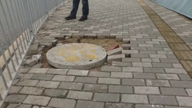 記者在現(xiàn)場(chǎng)發(fā)現(xiàn),龔女士踩到的井蓋旁邊有幾個(gè)通信光纜箱,附近有四五個(gè)規(guī)格相仿的井蓋,每個(gè)井蓋上都有l(wèi)ogo,而沒(méi)蓋好的井蓋不僅沒(méi)有標(biāo)識(shí),甚至還有被涂抹過(guò)的痕跡。就在此時(shí),聯(lián)通的工作人員來(lái)辨認(rèn)井蓋后表示,這個(gè)井蓋并不屬于他們。