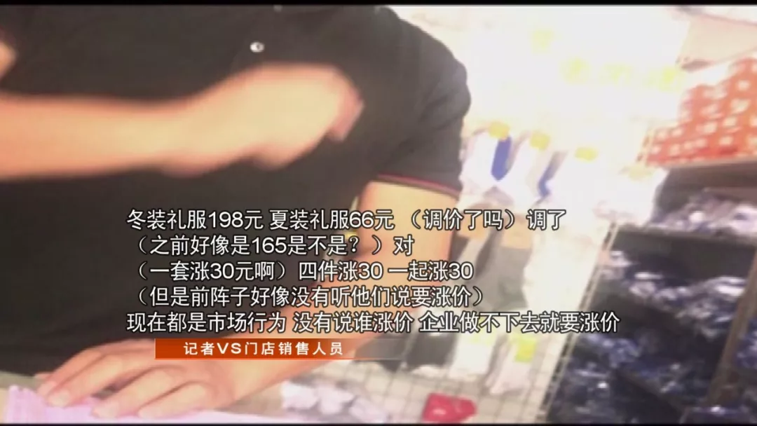 可是,她剛一踏進(jìn)這家位于農(nóng)林路的校服店詢問價(jià)格,老板第一句話就是:校服漲價(jià)了。