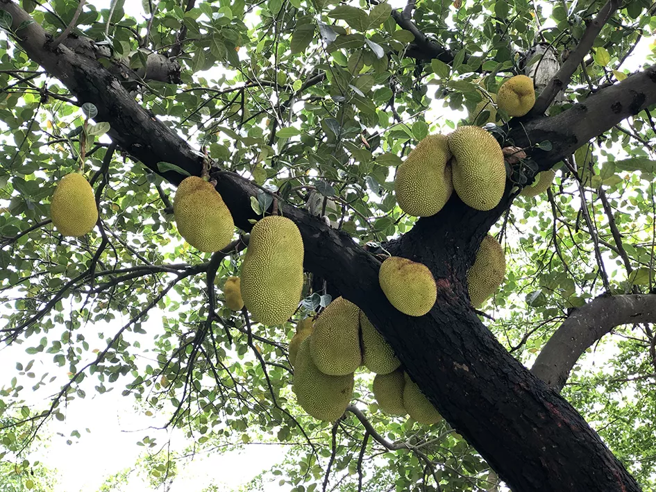 蛇口消息報(bào)2019年5月13日訊 日前,有居民向消息報(bào)反映,蛇口公園北路靠近蛇口體育中心一側(cè)幾百米的人行道上種植60余棵菠蘿蜜樹,樹上掛了不少果實(shí),蔚為壯觀,儼然成為路上一景。不過也擔(dān)心碩大的菠蘿蜜會掉落砸傷路人。