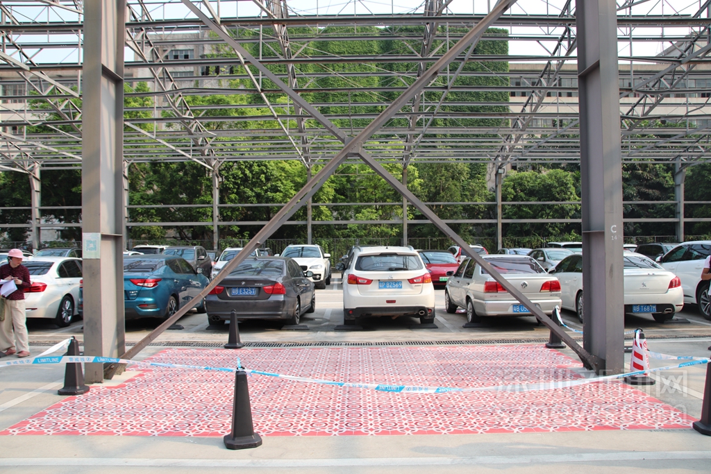 公共空間中明亮的、規(guī)則的色彩往往讓行人眼前一亮。西班牙視覺藝術(shù)家Javier de Riba帶來花磚涂鴉作品《安全地帶》,用彩色油漆仿制瓷磚的質(zhì)感進行創(chuàng)作,通過規(guī)則、反復(fù)的美好圖案,增加公共停車區(qū)域的家園感和安全感。這一作品還在開幕前開展工作坊,邀請公眾和志愿者一同參與完成。