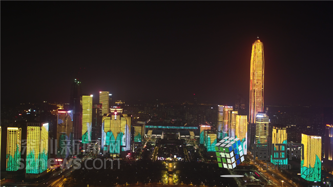 文博會(huì)期間,深圳市民中心的燈光秀每晚三場(chǎng)新舊版本輪番播放。