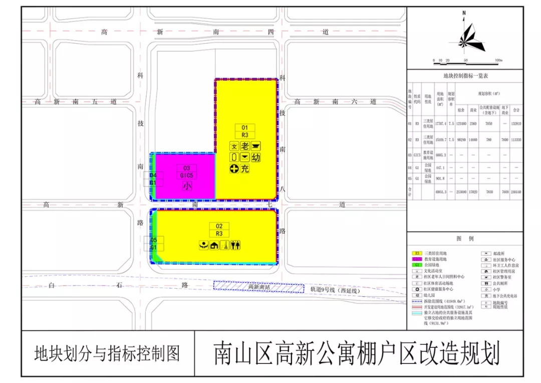 ▲南山區(qū)高新公寓棚戶區(qū)改造規(guī)劃地塊劃分與指標(biāo)控制圖