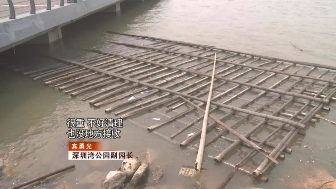 《第一現(xiàn)場》記者立馬跟進,找到了公園管理方。管理方表示,其實我們看到的才只是一小處,深圳灣沿岸十幾公里的范圍,每天都有不少竹排飄過來,不!過!?。?/span>這些竹排卻不!是!源!自!深!圳!