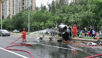 記者在現(xiàn)場看到,消防人員一直在給車澆水散熱,在綠化帶上都是小車掉落出來的生活用品,現(xiàn)場是否有人員傷亡?
