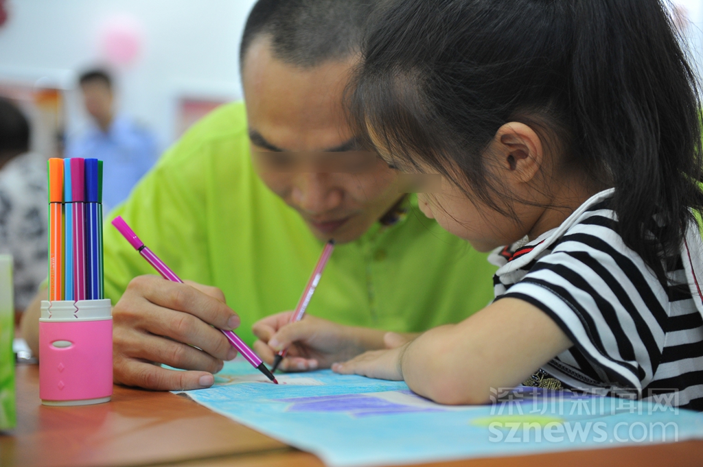 三歲半的圓圓自出生以來從未見過爸爸張某,這次在獄內(nèi)相見,一開始對(duì)身邊爸爸滿是錯(cuò)愕,完全把他當(dāng)成了陌生人,在媽媽的鼓勵(lì)下,才慢慢有了親情上的觸碰。張某把圓圓摟在懷里,眼睛從未離開過女兒,一會(huì)摸摸女兒的胳膊,一會(huì)給女兒拆零食,也陪著她做做涂鴉??沙诉@些,他暫時(shí)卻找不到和女兒交流更好的辦法。