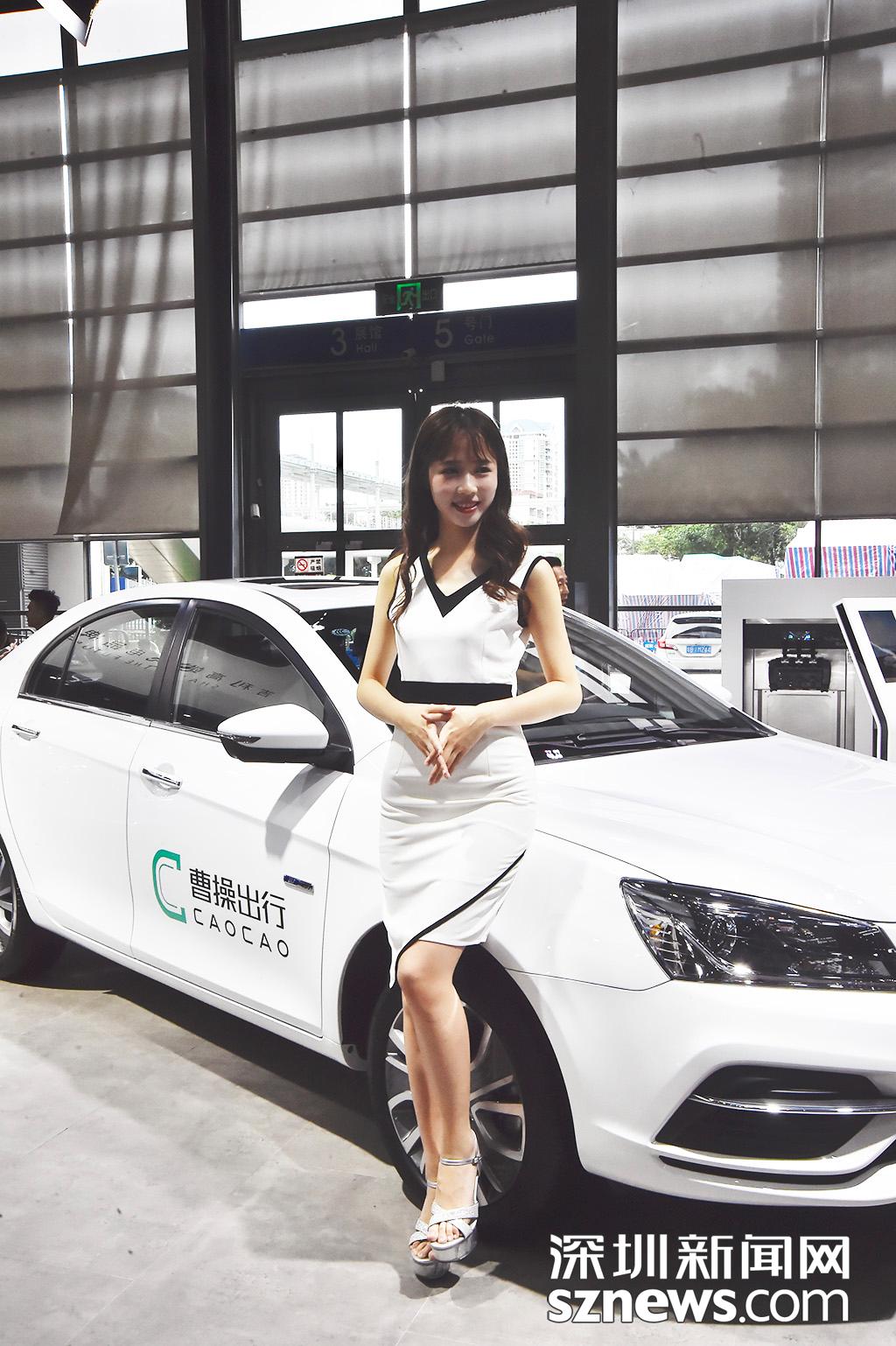 車展現(xiàn)場(chǎng)的車模擺起pose讓市民拍攝