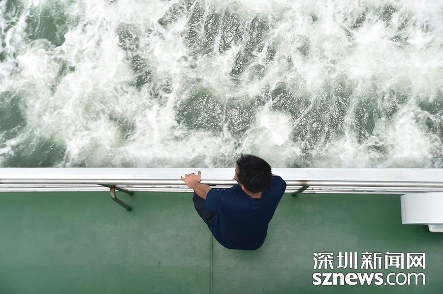 120名市民代表分成兩個(gè)航次乘船出游,每航次60人。中國(guó)海監(jiān)9012船從深圳濱海休閑帶海監(jiān)廣場(chǎng)碼頭起航,市民海上參觀了深圳灣大橋,經(jīng)國(guó)際郵輪母港、SCT碼頭,到大鏟島附近海域,后返回蛇口海監(jiān)基地。