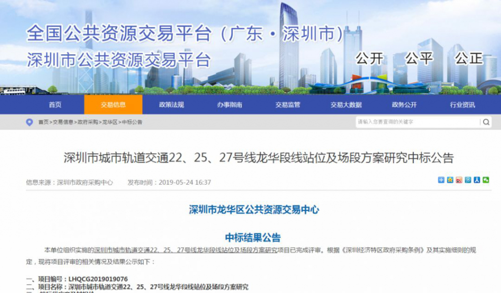深圳市公共資源交易中心發(fā)布了