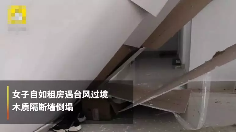 2018年9月臺(tái)風(fēng)“山竹”登陸期間,市民姚女士租住的自如公寓里,一面隔斷墻突然倒塌,墻卸下來(lái)里面就是很簡(jiǎn)單的木板。經(jīng)過(guò)幾個(gè)月協(xié)商,自如在2019年1月,賠償姚女士近5千元。