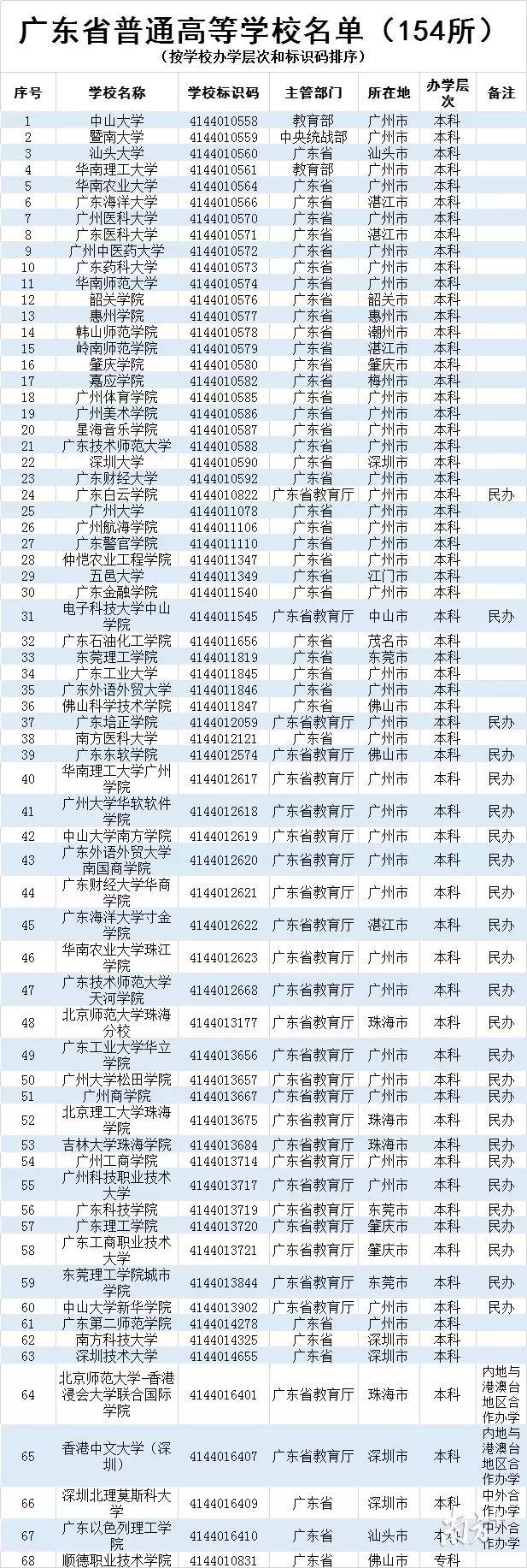 統(tǒng)計發(fā)現(xiàn),廣東有154所普通高校。與往年不同的是,今年廣東江門幼兒師范高等??茖W校、廣東財貿(mào)職業(yè)學院兩所新設(shè)立高校在省政府批準、教育部備案后,并正式啟動招生。