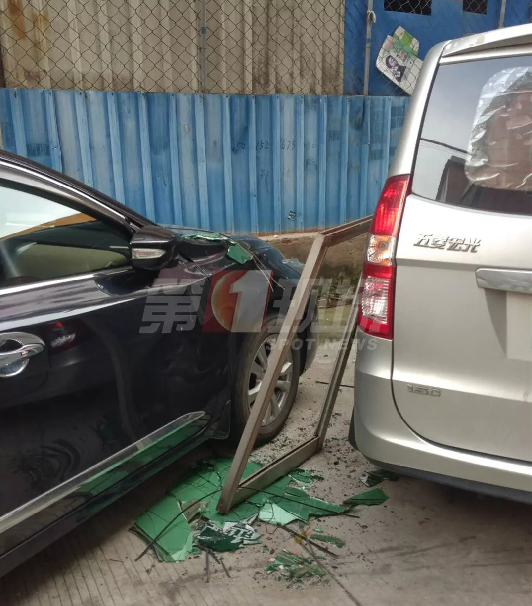 在現(xiàn)場,與陳先生同住一棟樓的梁先生告訴他,玻璃窗是從四樓掉落下來的,先是砸中了自己的車窗,然后在落地時剮蹭到陳先生的車輛。