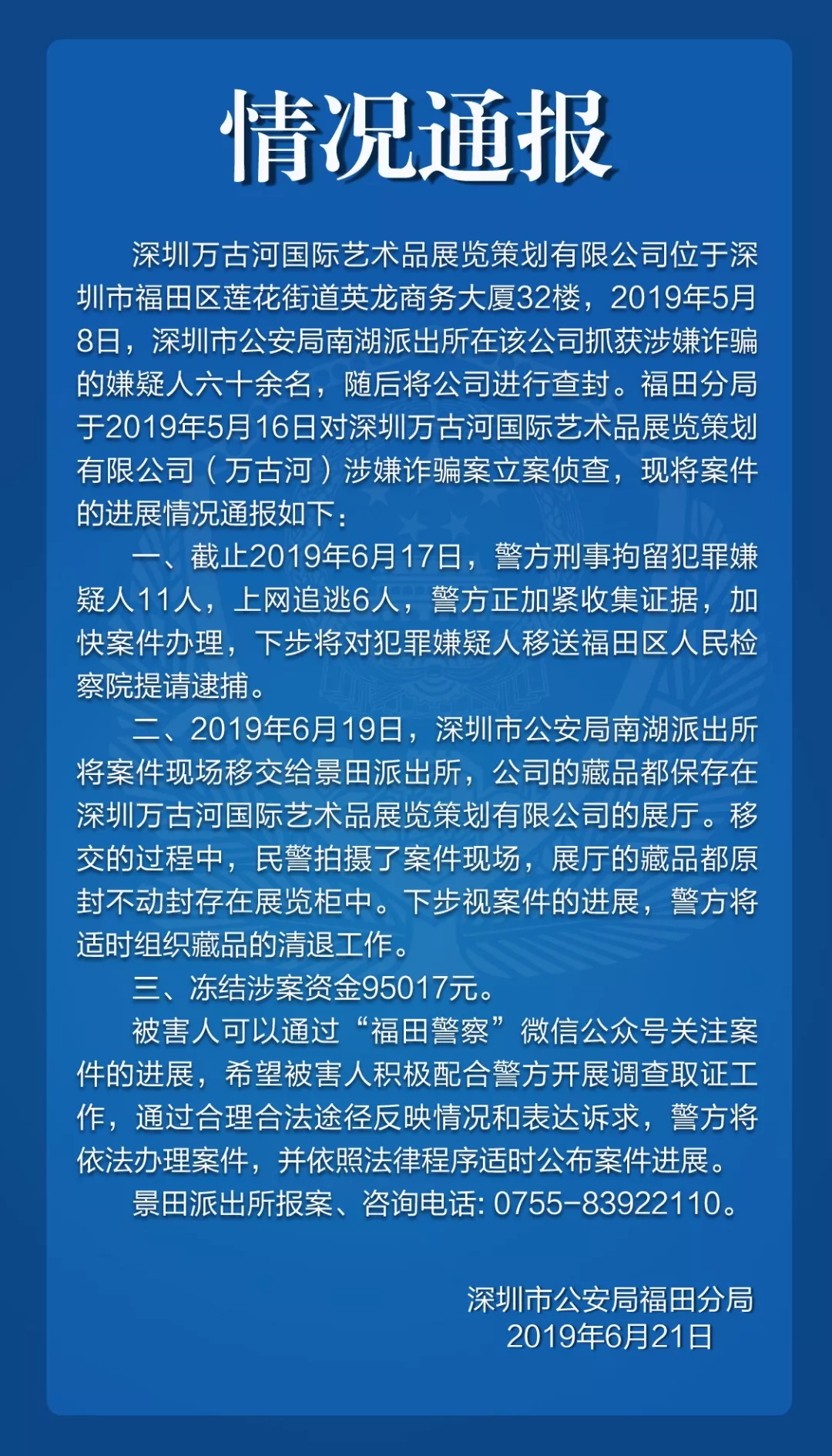 關(guān)于深圳萬古河公司涉嫌詐騙的情況通報