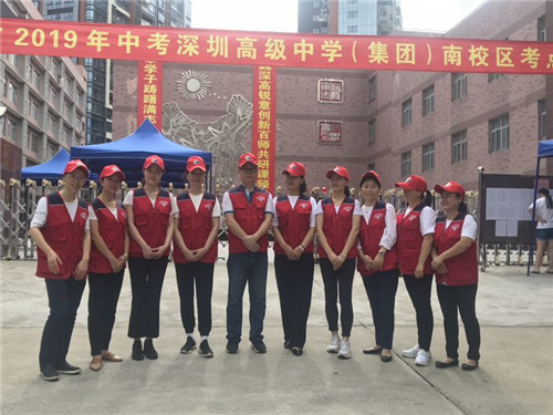 在深圳高級中學(xué)考點(diǎn)校門前,10位穿著紅色義工服的家長義工早早來到現(xiàn)場迎接考生、疏導(dǎo)人流、為考生加油。據(jù)深圳高級中學(xué)家委會(huì)會(huì)長馮女士介紹,中考期間,家委會(huì)將有數(shù)十位家長參與現(xiàn)場人流疏導(dǎo)、維持秩序,每天分為四個(gè)輪次,每科考試前后都各有10名家長義工參與。