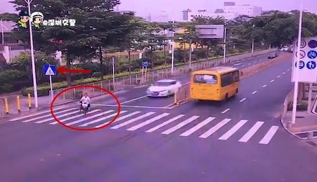 一男子騎車橫穿馬路被撞飛,而斑馬線就在不遠處