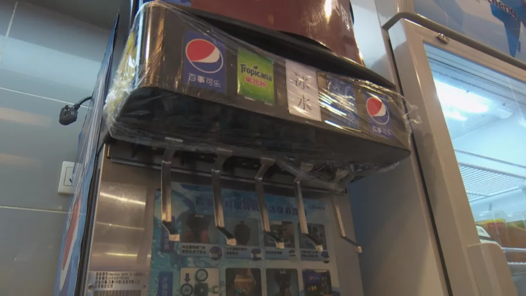 康先生說,7月2號上午10點多,他在福田天安數(shù)碼城的這家吾虎將快餐店,點了一碗米粉,和店內(nèi)飲料機(jī)裝出的一杯可樂。