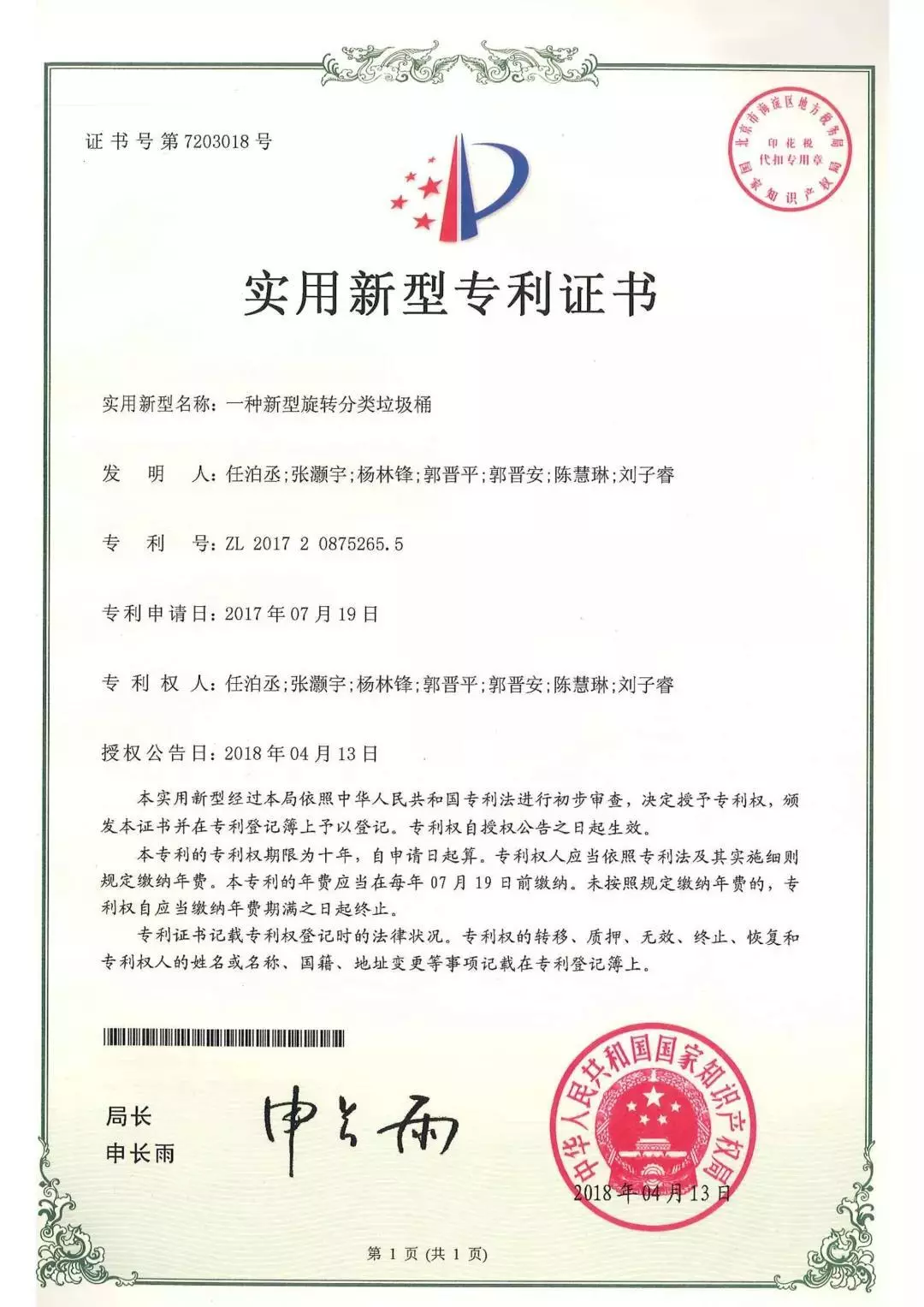 智能垃圾桶獲國(guó)家專利