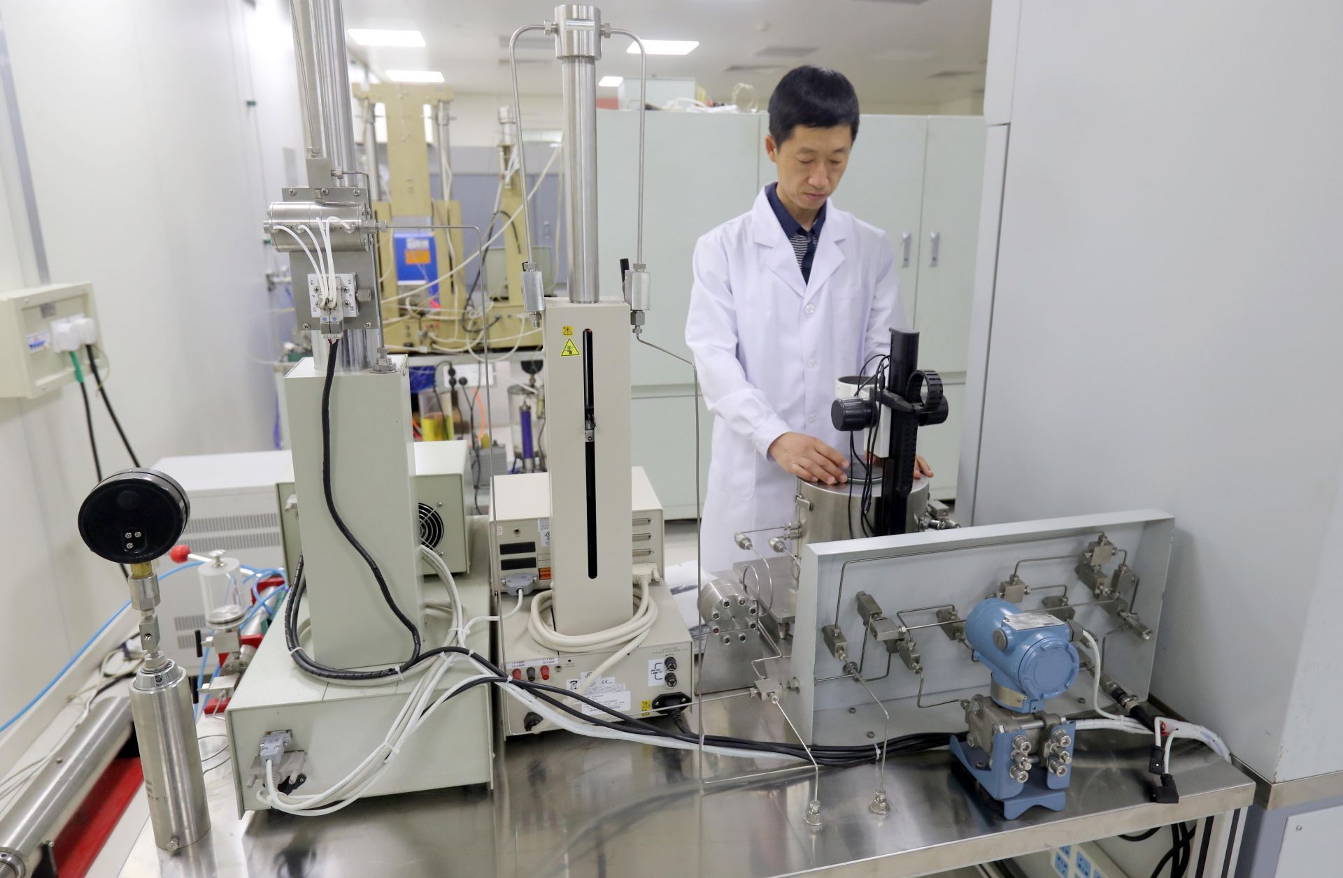 大慶油田勘探開(kāi)發(fā)研究院的科研人員在進(jìn)行油井鉆探相關(guān)實(shí)驗(yàn)。