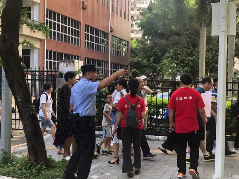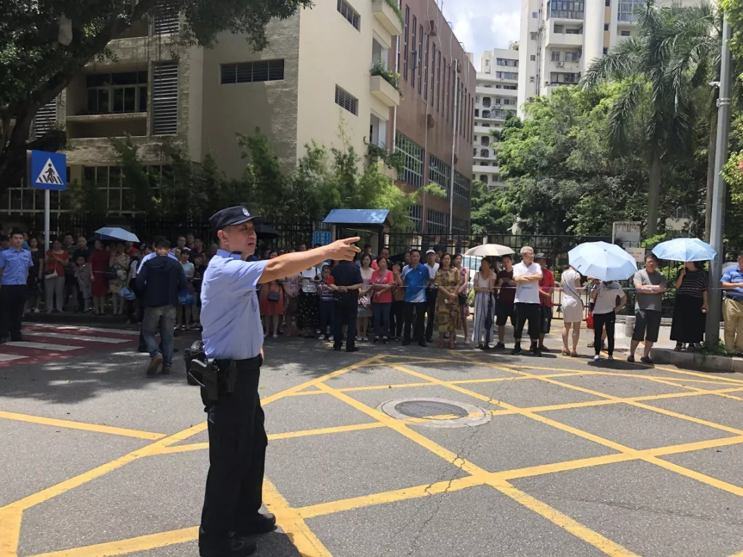 在深圳實(shí)驗(yàn)中學(xué)的校門外,正在執(zhí)勤護(hù)考的通心嶺派出所所長林志強(qiáng)正跟送考的家長們“嘮嗑”。“大家都站這么久了,辛苦了!一會考試結(jié)束后,咱們來猜一猜第一個(gè)走出來的是男生還是女生?!薄拔也率悄猩!薄拔也率桥??!奔议L們一掃臉上焦急的表情,開始笑著討論起來。