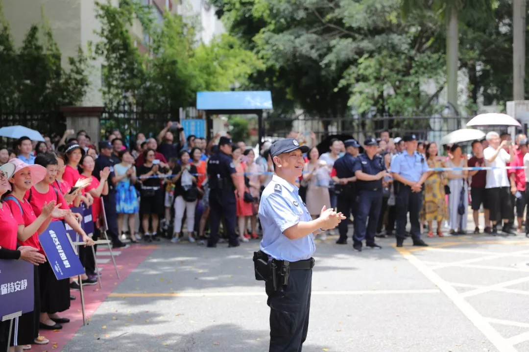 “鈴——”一聲長鈴響過之后,從校門口走出了一名女學(xué)生。“啪啪啪……”場外的掌聲馬上響起來,女孩愣了片刻,反應(yīng)過來后馬上紅著臉跑開了,家長們也都跟著笑起來。這時(shí),林志強(qiáng)趕緊組織好倒喇叭形人墻,一邊給隔離開的家長放行,一邊有序地疏散考生。45分鐘后,最后一名考生和家長都離開了考場,從早上6點(diǎn)就守在考點(diǎn)的林志強(qiáng)這才稍稍松了一口氣。