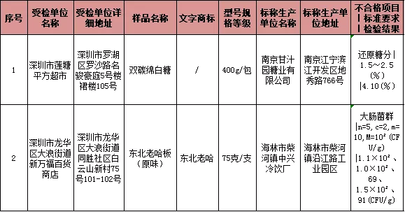 本次共抽檢流通環(huán)節(jié)食品717批次,涉及流通環(huán)節(jié)經(jīng)營(yíng)主體162家次,共檢測(cè)食品指標(biāo)4455項(xiàng)次。其中檢出不合格樣品2批次,涉及不合格食品類別有食糖1批次,冷凍飲品1批次;涉及不合格項(xiàng)目類別為微生物污染、品質(zhì)指標(biāo)。