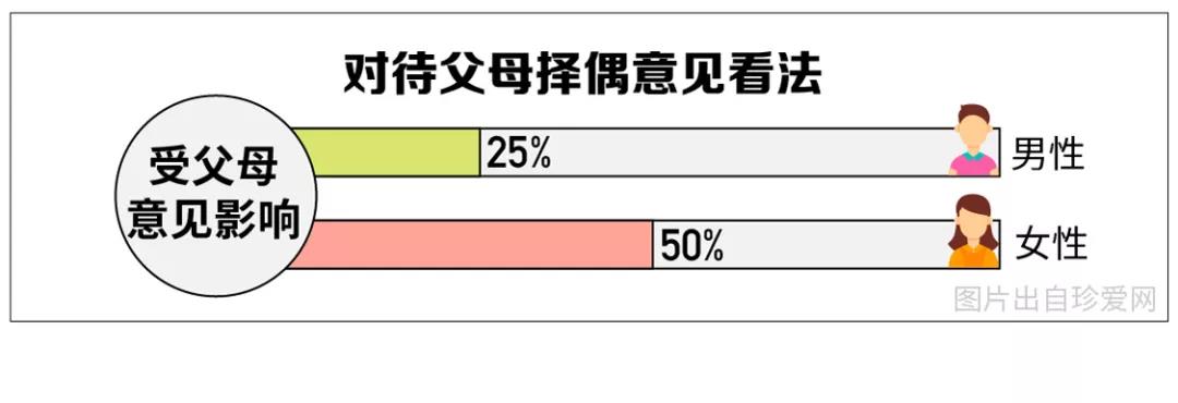 面對父母的擇偶建議,50%的女性會(huì)受到父母意見影響,僅25%的男性會(huì)受到影響,可見,女性比男性更“聽媽媽的話”。另外,從地域來看,“本地土著”青年更容易受到父母的影響。