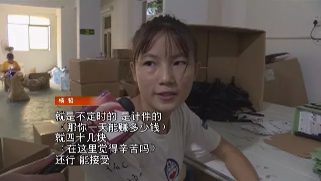 這個(gè)正在做包裝的少女叫做楊哲,她只有15歲來自湖南,剛剛初中畢業(yè),在這個(gè)小作坊里她每天都干著不同的小活,以按件計(jì)費(fèi)的方式,賺取一點(diǎn)費(fèi)用,以貼補(bǔ)家用。