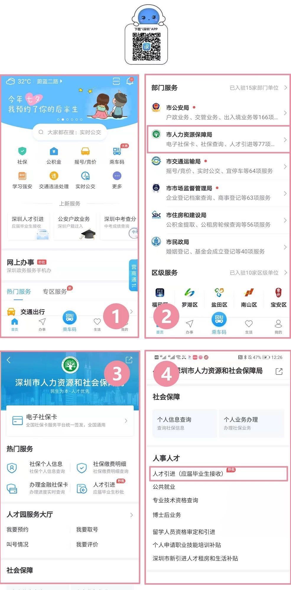 應屆畢業(yè)生辦理人才引進時,可以選擇下載“i深圳”APP在手機上辦理,路徑為:“i深圳”首頁-市人力資源保障局-人事人才:人才引進(應屆畢業(yè)生接收)。