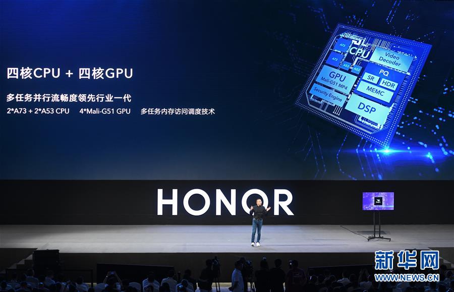 8月10日,華為榮耀總裁趙明在發(fā)布會上介紹榮耀智慧屏。新華社記者梁旭攝