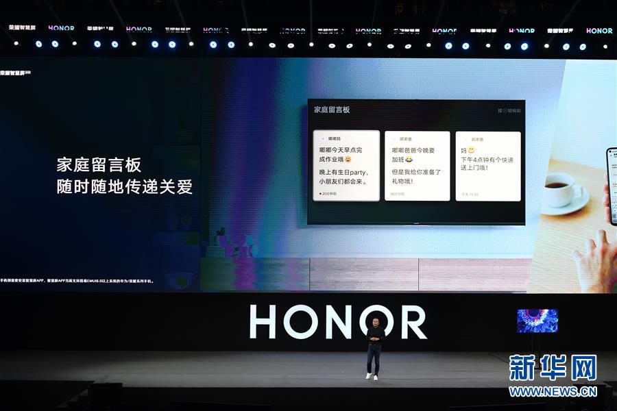 8月10日,華為榮耀總裁趙明在發(fā)布會上介紹榮耀智慧屏。新華社記者梁旭攝