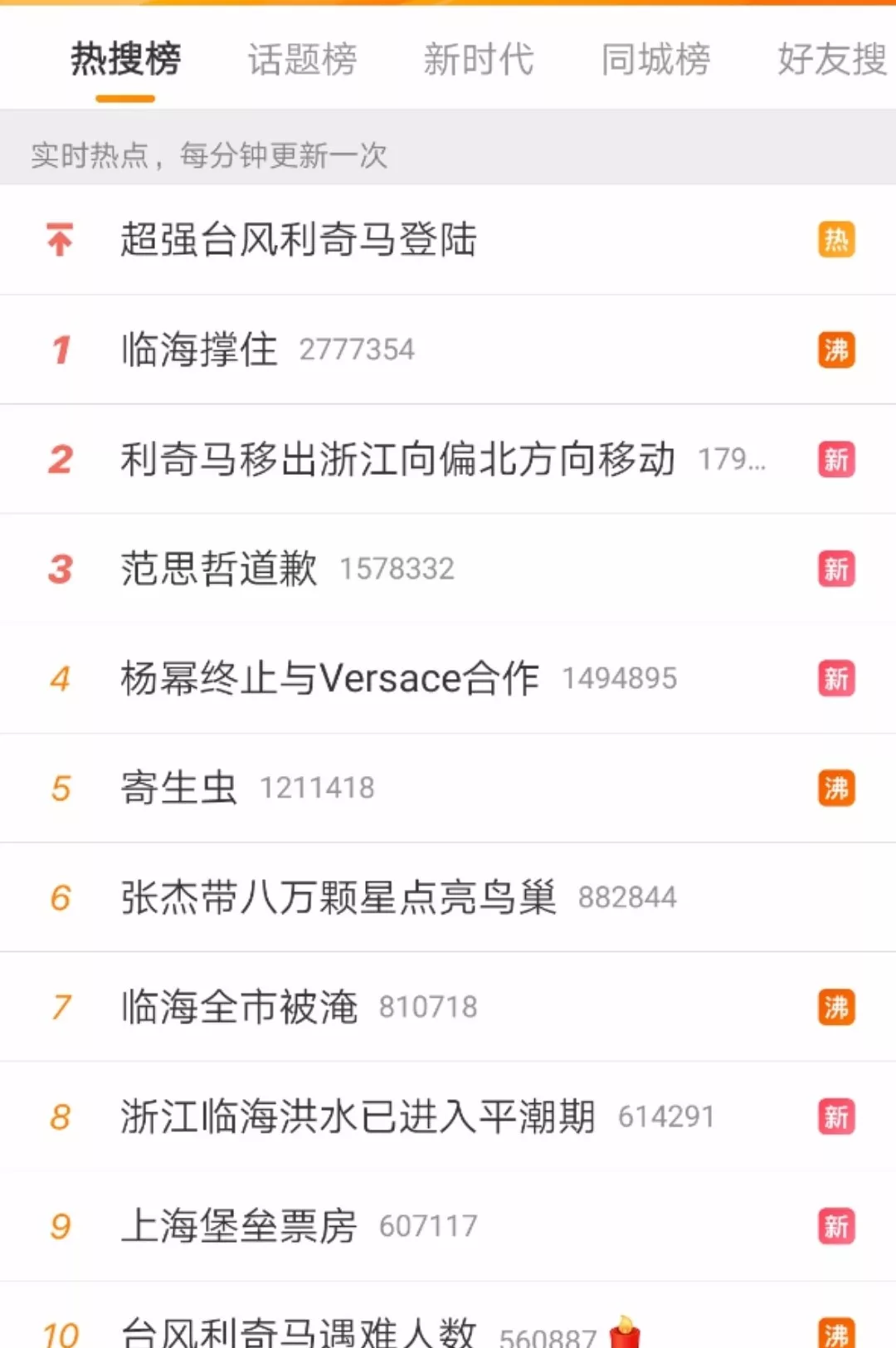 該消息發(fā)出半個小時后,臨海市防汛防旱指揮部于18點30分再次發(fā)出緊急通知:古城范圍內的各位市民,為安全起見,請盡快往居住房屋二樓或更高處轉移,切勿往較遠處轉移。直到10日晚21點許,臨海市防汛防旱指揮部第三次發(fā)出通報,表明洪水已進入平潮期,水位正在逐漸下降。臨海“告急”,牽動著億萬人的心。一時間,微博熱搜榜上,臨海的消息占據(jù)多條。