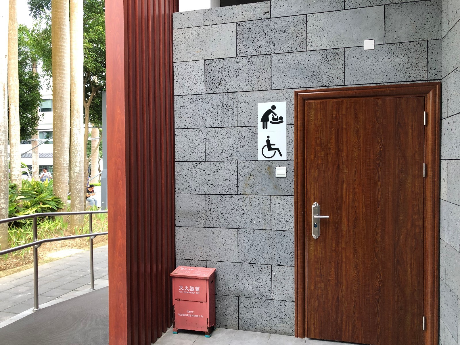 ▲記者來到深圳人頗為喜愛的“網(wǎng)紅公園”——香蜜公園采訪時(shí),正值夕陽(yáng)西下,天氣由炎熱略轉(zhuǎn)涼爽,很多家長(zhǎng)帶著孩子在兒童游樂場(chǎng)里嬉戲。游樂場(chǎng)附近有一個(gè)公共廁所,記者沒有找到親子衛(wèi)生間,但也在公廁門口發(fā)現(xiàn)了母嬰室、殘疾人衛(wèi)生間“二合一”的衛(wèi)生間,內(nèi)有一個(gè)帶扶手的坐便器和母嬰設(shè)施。