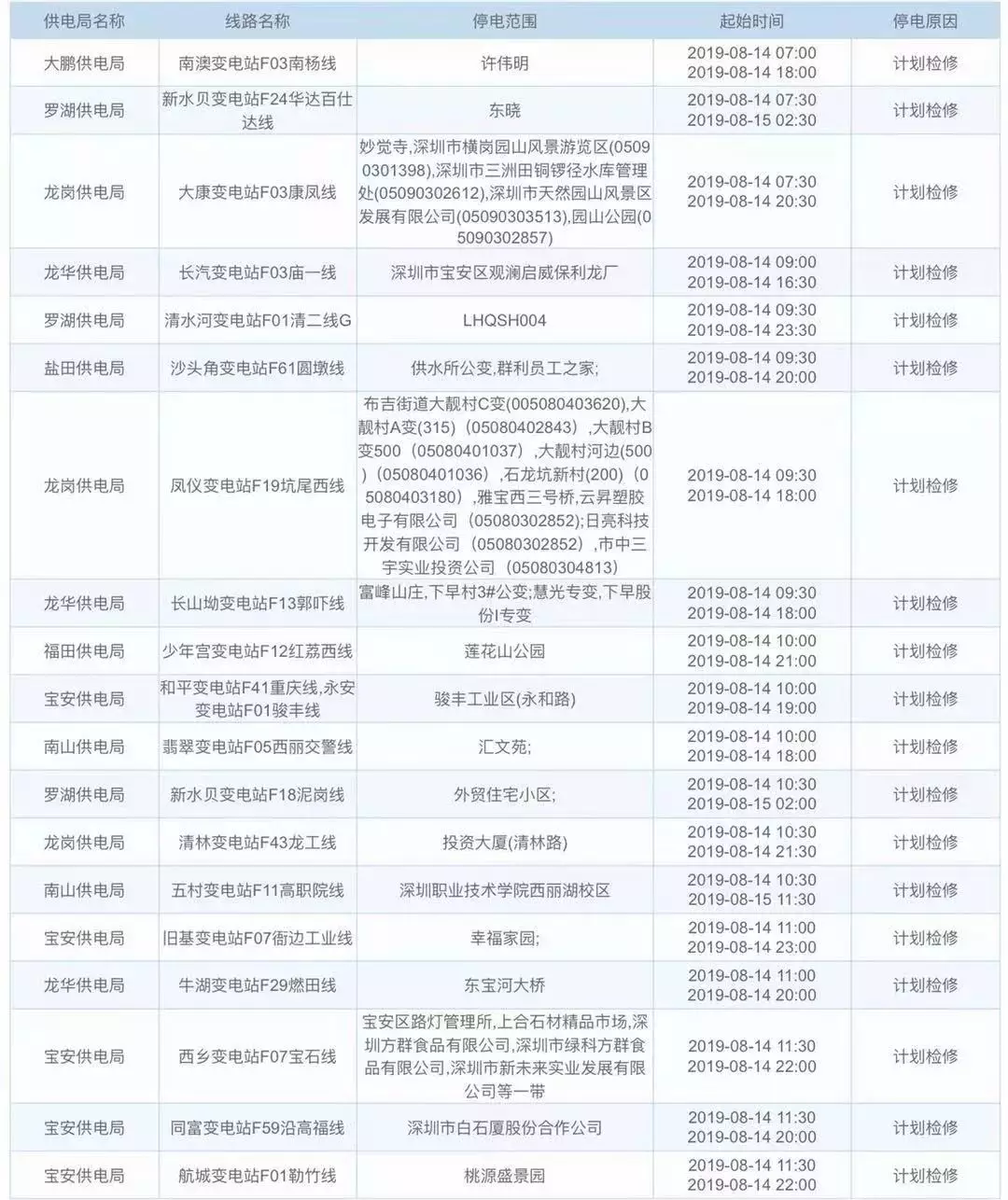 據(jù)中國(guó)南方電網(wǎng)信息,接下來(lái)這幾天深圳這些地方計(jì)劃停電,快看看有沒(méi)有你們家。