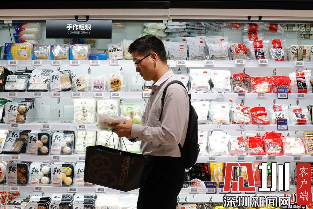 生鮮超市的冷柜前,一位市民正在選購商品