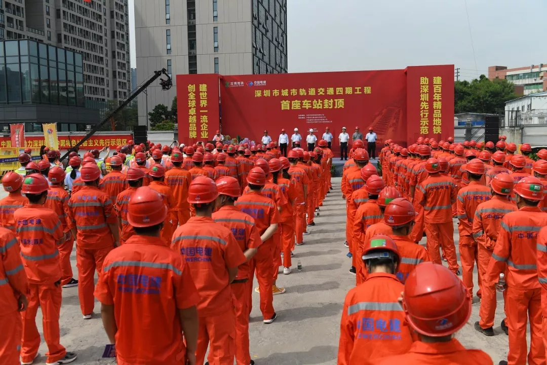 ▲深圳市城市軌道交通四期工程首座車站-洲石路站封頂儀式現(xiàn)場(chǎng)