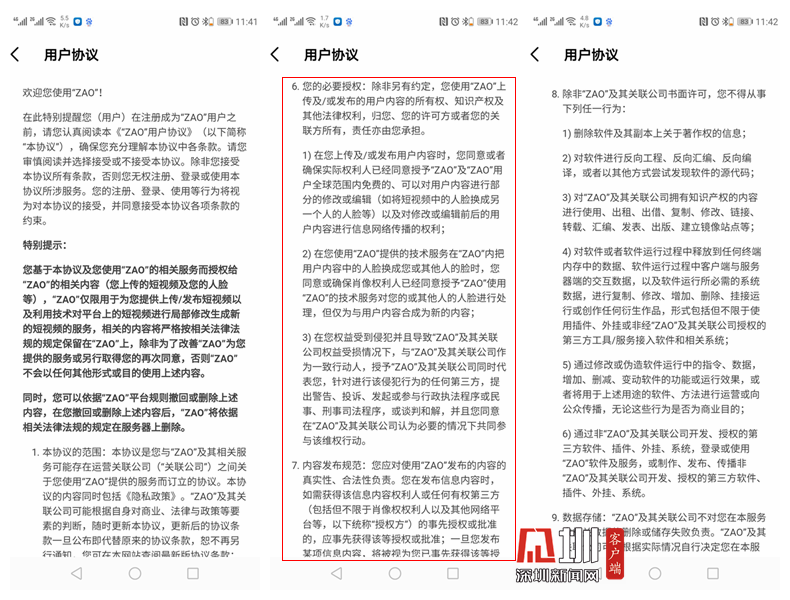 見圳客戶端.深圳新聞網(wǎng)2019年9月3日訊(見圳客戶端、深圳新聞網(wǎng)記者 張玲)從一夜爆紅,到爭議不斷,AI換臉APP“ZAO”三天內(nèi)體會到“過山車”般的口碑暴跌——由于其面部識別功能,及其《用戶協(xié)議》(簡稱“協(xié)議”)引起了網(wǎng)絡上的激烈討論。有人擔憂“ZAO”借此軟件搜集用戶面部識別信息向第三方銷售牟取暴利。