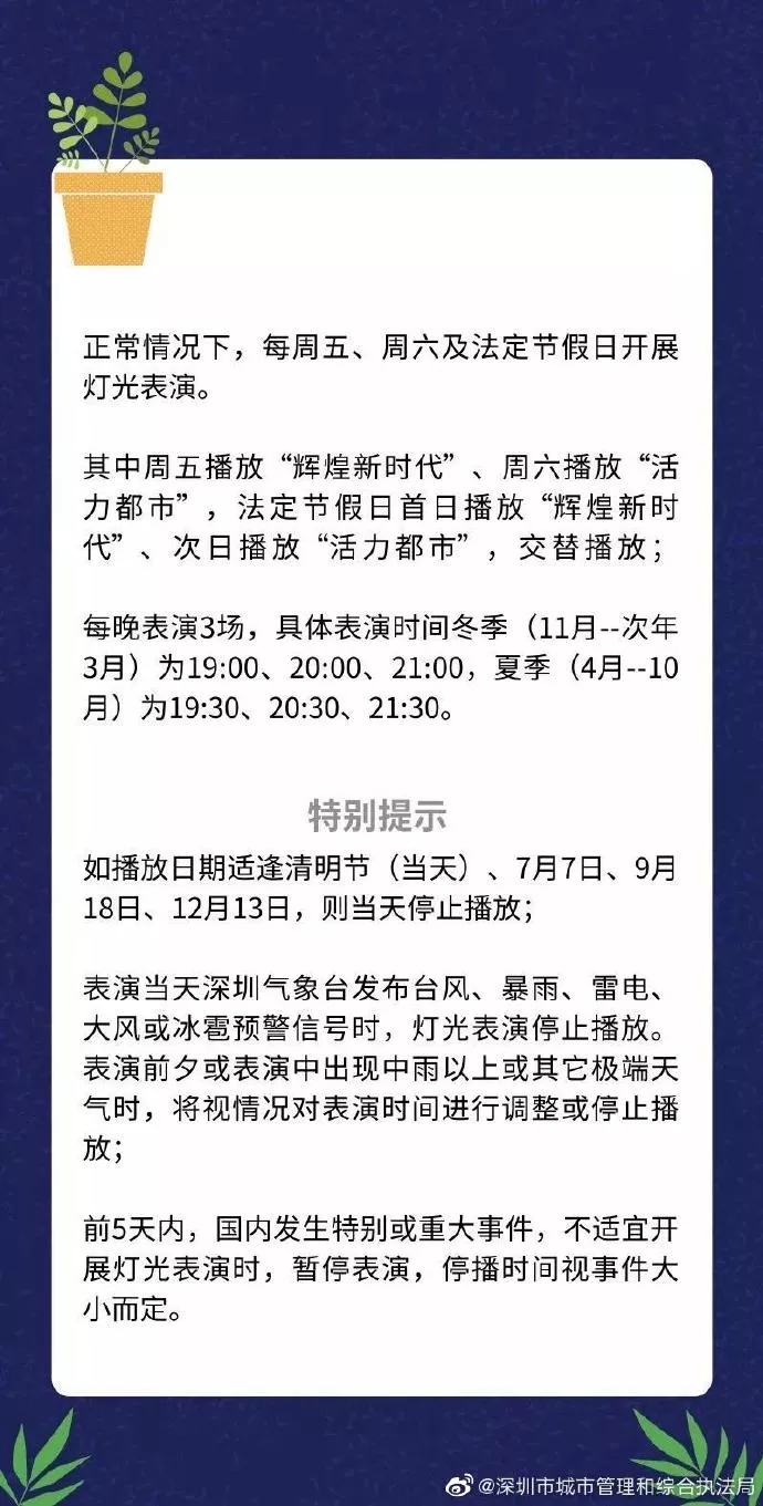 9月13日(星期五),因市民中心廣場(chǎng)有項(xiàng)目施工,臨時(shí)占用了燈光表演觀看區(qū)域,為確保安全,當(dāng)晚中心區(qū)燈光表演暫停。由此帶來的不便,請(qǐng)市民和游客諒解!