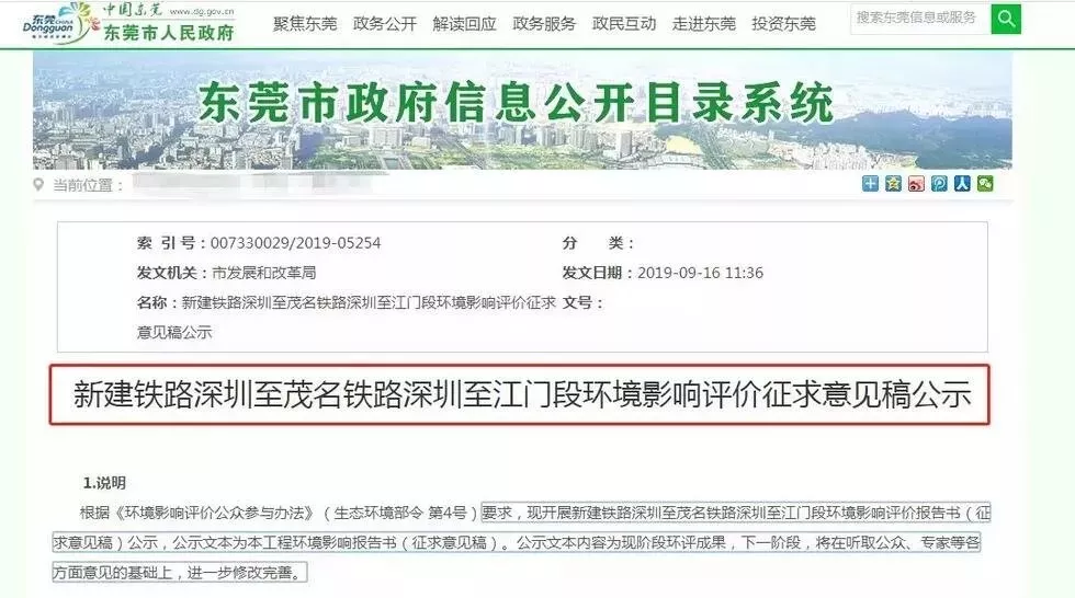 9月16日,《新建鐵路深圳至茂名鐵路深圳至江門段環(huán)境影響評價征求意見稿公示》正式發(fā)布!這意味著深茂鐵路建設(shè)又邁出關(guān)鍵一步。